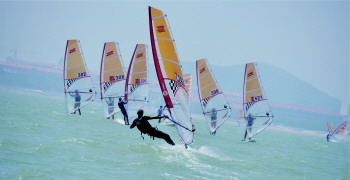 即墨也正在成为众多高端体育赛事举办地。图为省运会帆船帆板比赛。