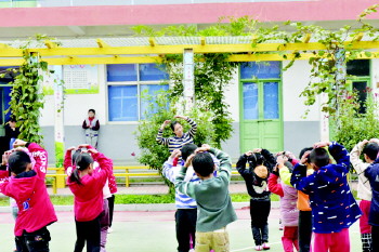 广播操比赛 为增强学生体质,活跃校园文化生活,近日,沂源县中庄镇中心小学举行了“舞动青春 尽显英姿”小学生广播操比赛活动。 (房秀坤 孙宵晓)