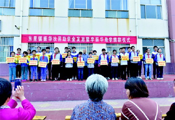 举行2019年度“振华扶困助学奖励基金”捐助 近日,沂源县东里镇“振华扶困助学奖励基金”捐助仪式在韩旺中心学校隆重举行。全国教育系统劳动模范李振华老师现场捐助3万元,对28名家庭经济困难、品学兼优的中小学生给予资助。(张希亮)