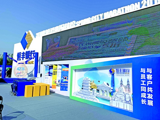 2019泉城(济南)马拉松博览会上,恒丰银行的展位十分耀眼醒目。