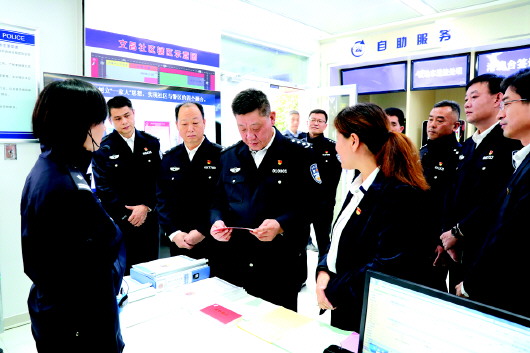 济南市副市长、公安局局长吴德生视察长清公安智慧警局建设工作。