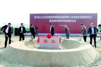 10月30日,济宁市2019年冲刺四季度新旧动能转换10月份重大项目集中开工暨湖滨印象项目奠基。本次集中开工的11个重大项目总投资27.2亿元,涉及现代服务业、智能制造、生物医药、智慧园区、新一代信息技术等领域,符合“十强产业”发展要求,代表着“四新经济”的发展方向,必将进一步开创济宁高新区高质量发展的新局面。图为开工仪式现场奠基。