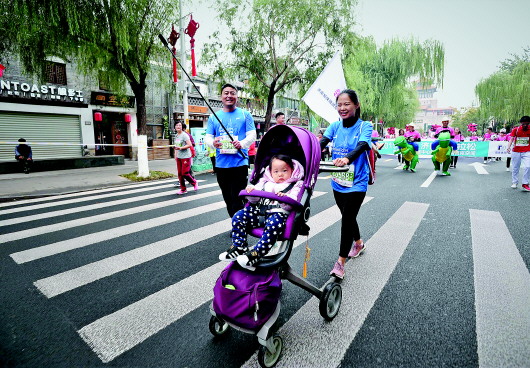 推着娃娃来参赛。 齐鲁晚报·齐鲁壹点记者 张中 摄