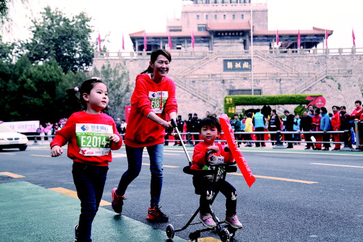 作为一场运动,马拉松赛场上充满了欢乐。不少人打扮成自己喜欢的模样,展示出自己最与众不同的一面。在迷你马拉松中,有的更是全家总动员,大手拉小手,在奔跑中享受亲人的陪伴。