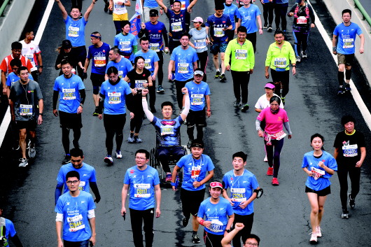在这场比赛中,对速度的刷新令人折服。但是,坚持的力量更是让人动容。有的残障跑友坐在轮椅上,飞快地用双手转动着轮椅,你追我赶不愿落后。他们用轮椅代替双脚,用自己的坚守与坚韧诠释永不放弃的马拉松精神。这样特殊的“轮椅上的马拉松”,更是让人深深体会到,什么才是不屈不挠的人生。