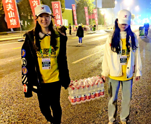 本报济南11月2日讯(记者 范佳) 2日凌晨,当大多数市民还在熟睡时,赛道各段已经热闹和忙碌起来了。志愿者们不顾困意,一大早就投入到了工作中。