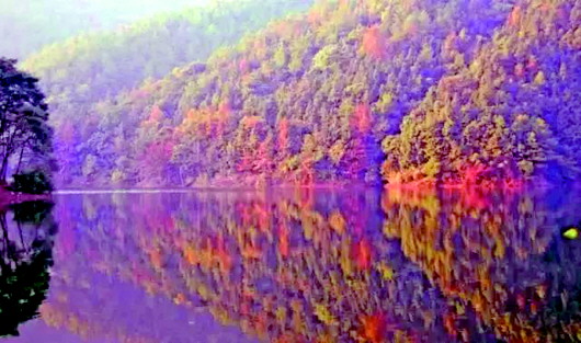 五花海是九寨沟的骄傲,原本就富有的色彩,有了秋色加盟,更加璀璨一片,有如打翻了阿拉伯神话中的藏宝箱,铺张出一片豪华。