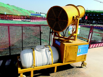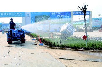 工地内的雾炮车。