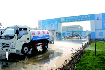 10月30日上午,在济宁文化产业园项目施工现场,几名保洁人员正在清扫地面上的尘土。一辆洒水车紧随其后,有序作业,围挡上的喷淋装置正在喷洒降尘。“我们将施工现场用围挡进行全封闭,出入口及主道路进行了硬化并铺设钢板,每天安排专职保洁员进行打扫。”中建三局济宁文化中心项目部安全总监侯为辉介绍,施工现场还设有扬尘检测仪,实时关注PM10动态数据,并在塔吊、外架、围挡及基坑周圈设置喷淋装置,采用土方湿法作业,每天定时喷洒降尘,洒水车每天不间断对施工现场进行洒水降尘。