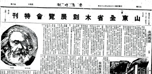 历史上,1936年的青岛可谓精彩纷呈,继7月20日至22日,中华图书馆协会、中国博物馆协会联合年会在青岛召开后,7月24日至27日,由山东“左联”组织发起的山东省木刻展览会在青岛兰山路小学举办,展出数百幅木刻作品。其间,岛城报纸予以重点报道,开辟特刊宣传介绍木刻艺术、发表评论,引领岛城市民读者感受木刻版画的艺术魅力,在青岛文化发展史上影响深远。