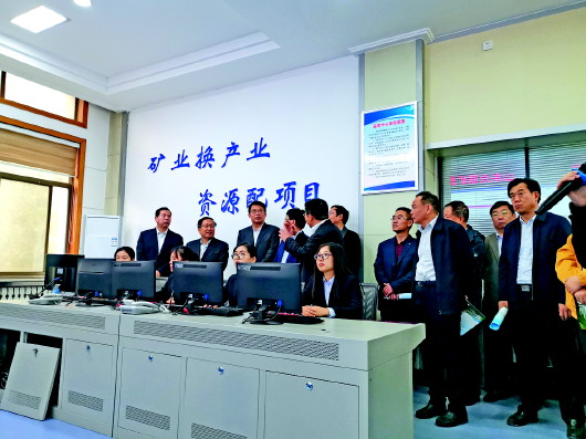参观者对济南平阴矿业服务平台进行观摩考察。