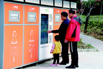 在广场一侧的空地上,智能垃圾分类回收机摆在显眼的位置。不少儿童拿着各类垃圾准备投入垃圾分类回收机,饮料水瓶、有害垃圾、玻璃回收……各类回收窗口依次排开,儿童兴致勃勃地将各类回收物放入对应的窗口。“回收窗口前有标识,可以很好地将垃圾分类的环保理念传递给小朋友,现在孩子心里也有了垃圾分类的概念,甚至带动家长也加入环保的队伍中来。”社区居民张凌说。