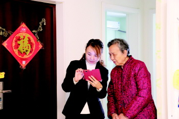物业工作人员帮助老人解决手机使用问题。