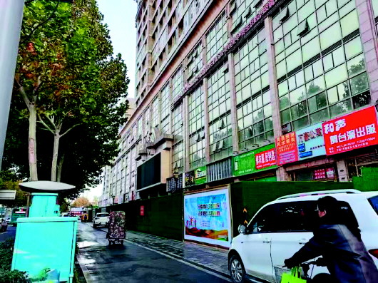 而在万豪中心,临街的商业用房也被绿色围挡围起,旁边一名小卖部老板称,这栋楼已经围起来快一年了。