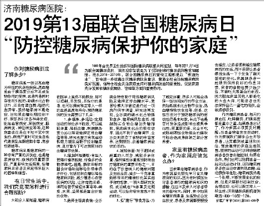1991年由世界卫生组织和国际糖尿病联盟共同发起,每年的11月14日为联合国糖尿病日,该活动宗旨就是为了引起全球对糖尿病的警觉和醒悟。而从2018-2019年,联合国糖尿病日的宣传主题都是以“家庭为主”,旨在进一步提高全民糖尿病防治意识,营造全社会防控糖尿病的良好氛围,倡导全社会关注家庭支持对糖尿病防治的重要性,促进家庭充分发挥在糖尿病预防、管理等方面的重要作用。