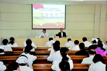 市北区人民医院党总支近日邀请青岛市百姓宣讲团于春山团长,进行“永远铭记为青岛解放事业做出牺牲的先烈们”专题演讲。通过学习和缅怀先烈,推动“不忘初心、牢记使命”主题教育往深里走、往心里走、往实里走,进一步加强全院党员的政治教育和思想教育,引导党员守初心、担使命、找差距、抓落实、逐梦想。