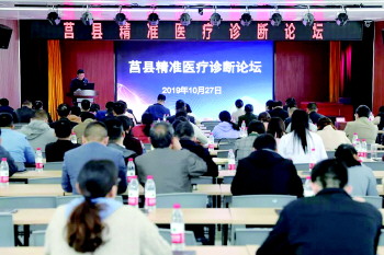 会上,理事长马德鑫介绍了莒县人民医院精准实验室及医院的情况并致欢迎词。他说,莒县人民医院精准医学实验室成立于2018年,位于浮来院区,总投资2000万元。实验室主要基于分子、测序、质谱、以及流式细胞等检测平台,以精准医疗概念为核心,采用国内前沿的检测技术,将检验与各临床需求有机结合,致力于为肿瘤、药物代谢及遗传基因等领域的精准医疗提供先进、准确、完整的医学诊断。以前医院很多高精尖的检验项目需要外送到北京、广州、上海等地,检验周期长,给患者带来了很大不便。精准实验室新仪器、新方法的引进,不仅缩短了检验周期,让更多的患者得到更快、更高水平的诊断结果,同时也可以更好地服务于周边各级县市医院,真正实现区域诊断中心的职能和作用。最后,为各位专家不辞辛苦的到来表示热烈的欢迎和衷心的感谢。