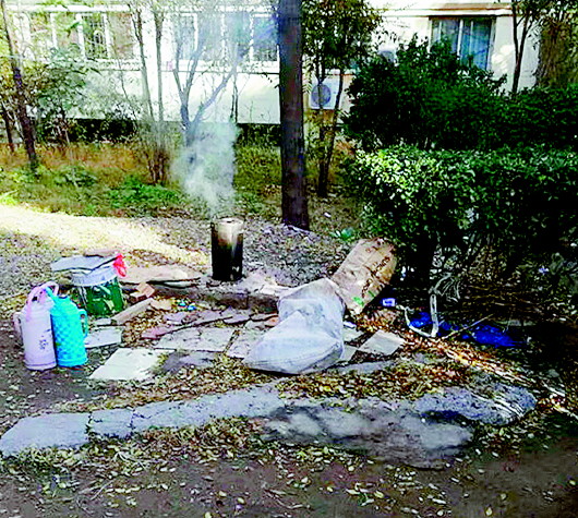 乐天小区绿化带里不少这种炉子在燃烧着。