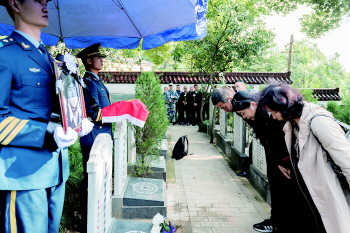 11月8日上午,作为空军1796名烈士之一,戴自强烈士的骨灰安葬仪式在杭州市革命烈士陵园隆重举行。