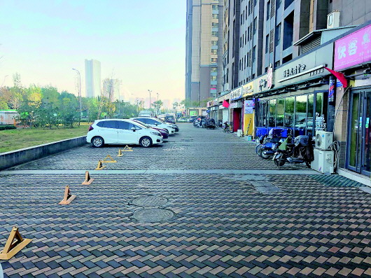◥由于高空抛物频发,17号楼门头房前的车位无人敢停。