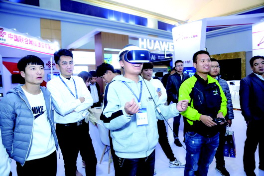 在世界人工智能融合发展大会展览区,很多人体验先进技术带来的新奇和快乐。会议主办方供图