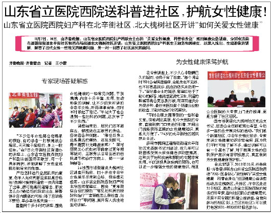 山东省立医院西院妇产科在北辛街社区、北大槐树社区开讲“如何关爱女性健康”