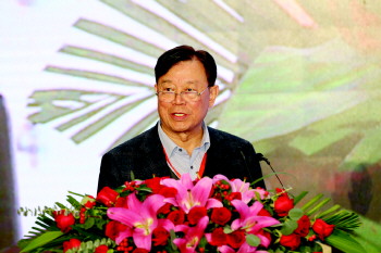 中国民间商会副会长,东岳集团党委书记、董事局主席张建宏作《坚定创新,让祖国更强大,让东岳更优秀,让客户更满意》讲话