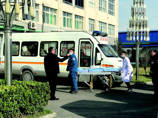 救护人员在出口处做好急救准备。齐鲁晚报·齐鲁壹点记者 李岩松 摄