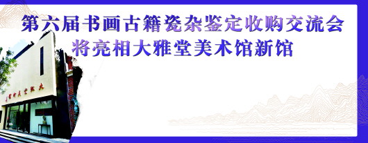 为弘扬齐鲁文化传承,拓展名家书画、古籍碑帖、瓷器杂项收藏领域,大雅堂美术馆联合多家知名收藏机构,举办艺术品交流洽购盛会,届时有中国收藏家协会权威专家现场免费鉴定、评估,物真品优的艺术品可以现场交流,现金回购。欢迎各位藏友莅临指导,交流鉴赏。