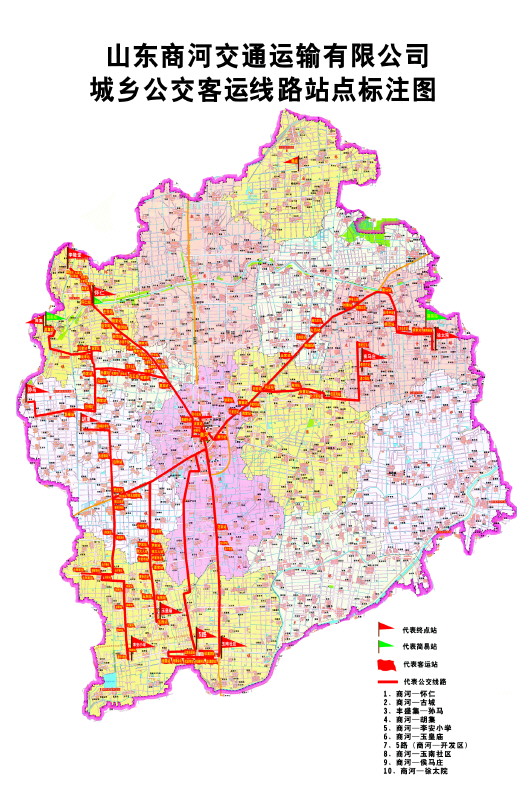 山东商河交通运输有限公司城乡客运线路站点标注图。