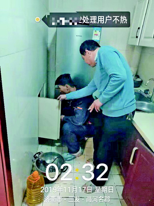 凌晨2点多,热企工作人员去用户家中处理不热点。