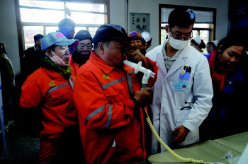 11月19日下午,潍坊市人民医院呼吸内科二区主任谭薇、社工部李翔等医务人员来到奎文区环卫处,给60多名环卫工人进行了慢阻肺防治知识讲座及防雾霾宣教,亲切解答了大家在气道疾病方面的问题,并开展了免费肺功能筛查,同时为大家测量血压、血氧饱和度,并还在寒冷的冬季向工人们赠送了保温杯。