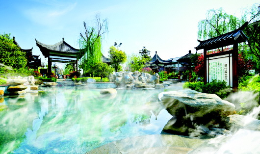 智圣汤泉温泉水日出水量达5000多立方,水温高达78℃,富含偏硅酸、氟、碘、溴、锂、锶等30多种有益人体健康的矿物质微量元素。温泉区设有动感温泉区、先天八卦养生区、孔明文化区、生态温泉区、室内大型SPA水疗、泳池区等60多个功能各异、大小不一的各类温泉池。可同时容纳2000人沐浴,日接待量可达6000余人。温泉池可以调节人体内阴阳平衡,以达到强身健体之功效。同时温泉中心为宾客免费提供休息大厅、健身房、乒乓球室、网吧、沙壶球、台球等多种休闲娱乐项目及水果、点心、饮品等,让您真正体验休闲和放松的乐趣。