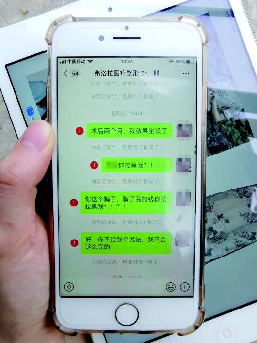随后,周女士找到弗洛拉整形诊所讨要说法,但诊所却称她就医登记时留的名字和身份信息是假的,认为她是有预谋的诈骗,多次沟通未果工作人员最终将她拉黑。无奈,她只好向卫生监督部门举报,但卫生部门却告诉她证据不足,无法确定手术是全麻。