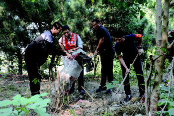 “公司包保的这条路有5公里左右,我主要负责清华驾校到京杭路这段,大约有2公里,除了清理路面上的垃圾,劝导不文明行为,更重要的是绿化带以及沟渠的垃圾清理。”济宁北湖建设集团市政工程部工作人员黄士朋说,绿化带的垃圾比较难清理,大家需要用夹子深入到冬青里面去捡烟头,而且旁边的草丛里还经常出现粪便,他们就用随手带的铁锨就地掩埋。