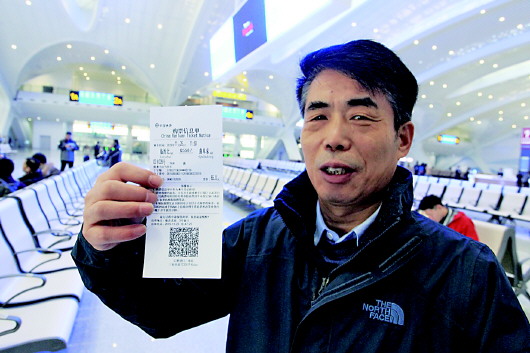 鲁南高铁建设者丁宇翔买到了鲁南高铁首张车票。