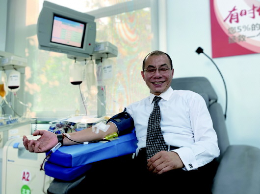 若不问及年龄,很难想象,眼前这位身形标准、西装革履的“献血达人”今年已经51岁。