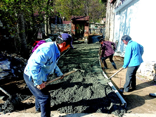 在章丘区官庄街道渔湾村,村民自愿出工出力,让硬化道路早日通到家门口。