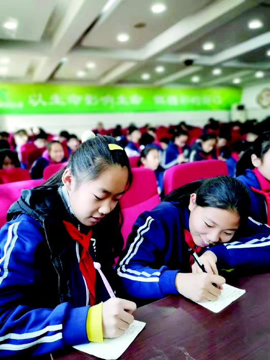 新苑小学研前导学课上,学生认真记录。