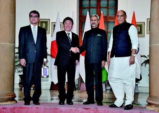 彭博社报道称,日本当前积极寻求在更广泛领域加强与印度的关系,以平衡中国在印太地区的主导地位。11月29日至12月1日,日本外务大臣茂木敏充和防卫大臣河野太郎对印度进行为期三天的访问,与印度外长苏杰生、防长辛格共同出席日印首次“2+2”会谈。此前该对话机制一直被限制在事务官员层面。印度报业托拉斯援引印度政府消息人士的话说,此次“2+2”会谈将为印日强化在印太地区的合作提供平台。