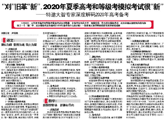 11月30日,山东夏季高考和等级考模拟考试拉开帷幕,全省考生同步开考,规模空前。作为首次模拟考试,此次命题从题型到内容均体现了一个“新”字,此次模拟考试命题对于2020年高考有什么启示呢?一起来看大智学科研究院专家的研究成果: