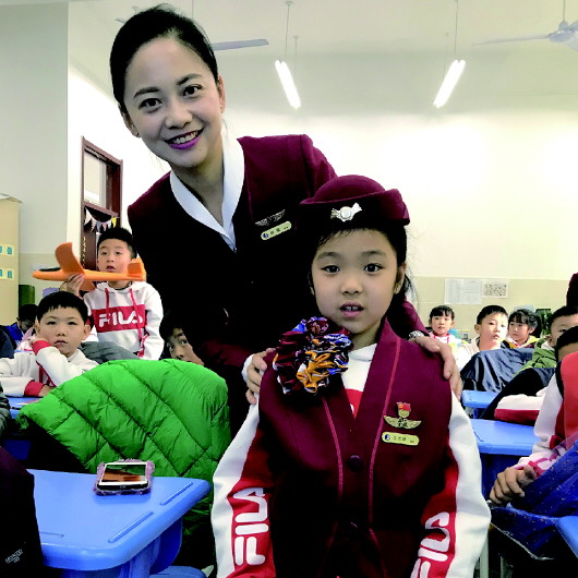 11月27日,山航客舱部济南大队乘务五中队的乘务员们来到辅仁小学,为孩子们带去了航空安全课。