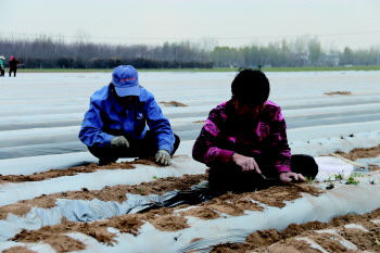 眼下正是丹参栽苗的黄金时节,记者在高新区接庄街道垞河村的中药材种植基地看到,成片的丹参铺满农田,长势喜人。十几名工人正在田间抢栽丹参苗,覆膜工作也在同步进行。