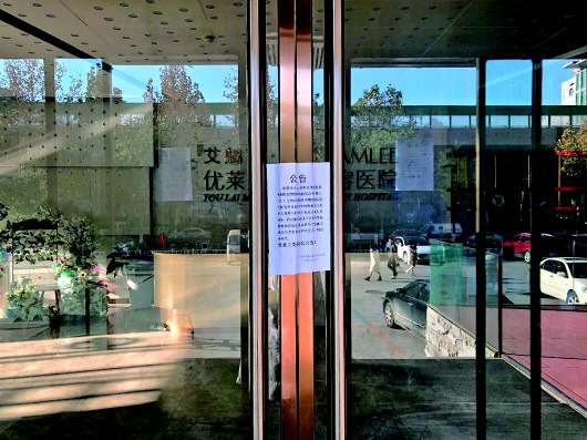 济南优莱美整形美容医院人去楼空,大门被锁。齐鲁晚报·齐鲁壹点记者 张国桐 摄
