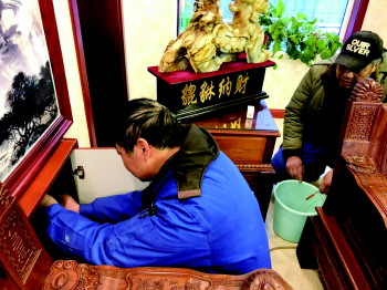 2日下午,在环北花园8号楼2单元2楼陈清美家中,济宁运河热力办公室副主任贾存孝开始检查暖气存在的问题。凭借多年的从业经验,贾存孝仅凭手感触摸暖气片的温度分布,就能知道问题所在。