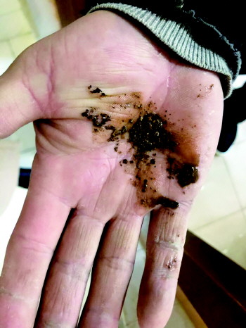管道中堵塞的杂质。 齐鲁晚报·齐鲁壹点 记者 周惠娇 摄
