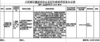近日,人民银行潍坊市中心支行行政处罚信息公示表((潍银)罚字〔2019〕第15、16、17号)显示,日照银行股份有限公司潍坊分行存在单位银行结算账户备案不及时、创建征信系统用户备案不及时、未按规定履行客户身份识别义务三宗违法违规行为。