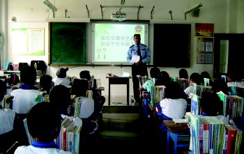 法制宣传教育 近日,沂源县交警大队“法制宣传教育下乡活动”走进沂源县石桥中学,为学生送上了一堂生动的交通安全教育课。 (张春成 杜春坤)