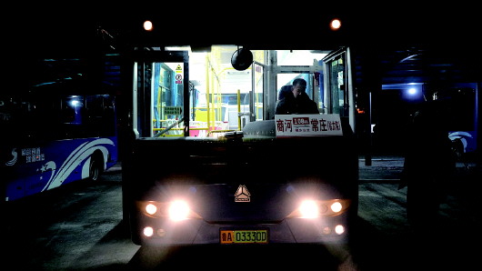 夕阳西下,天气渐凉,太阳收敛了余光,商河的城区开始灯光闪烁,匆匆返家的人们归心似箭,而此时的公交车停车场依然热火朝天地忙着,陆续有人开车返回。