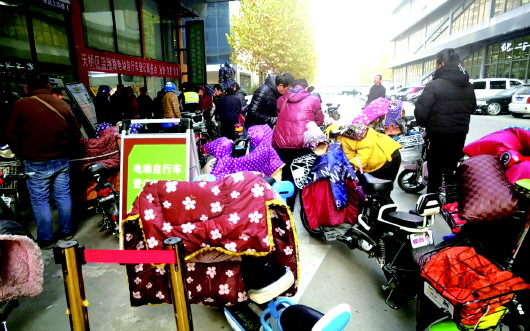 12月5日上午9点半,济南天桥区蓝翔路电动车挂牌代办服务点前,聚集了许多前来挂牌的市民。